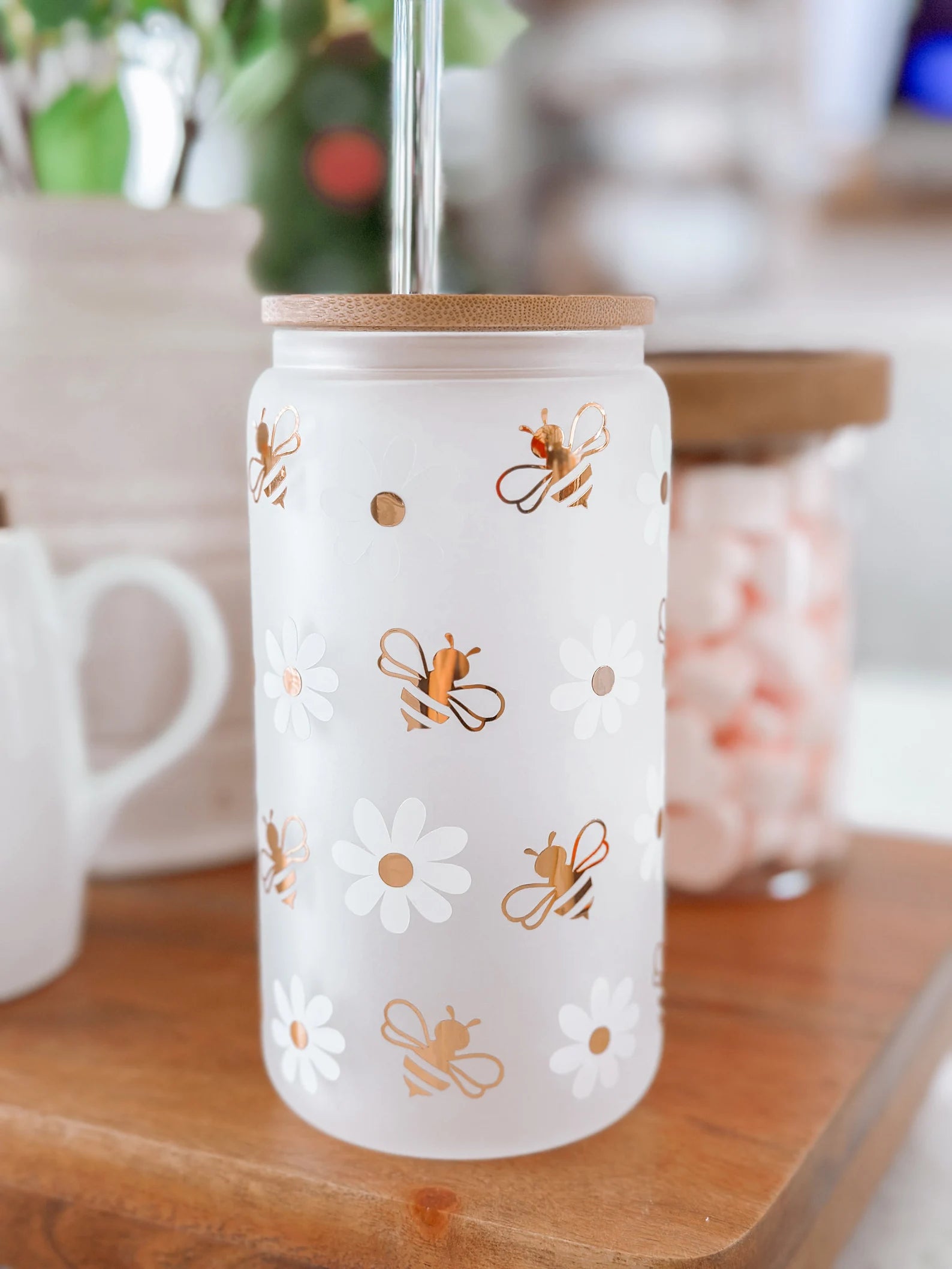 Daisy and Bumble Bee Glass