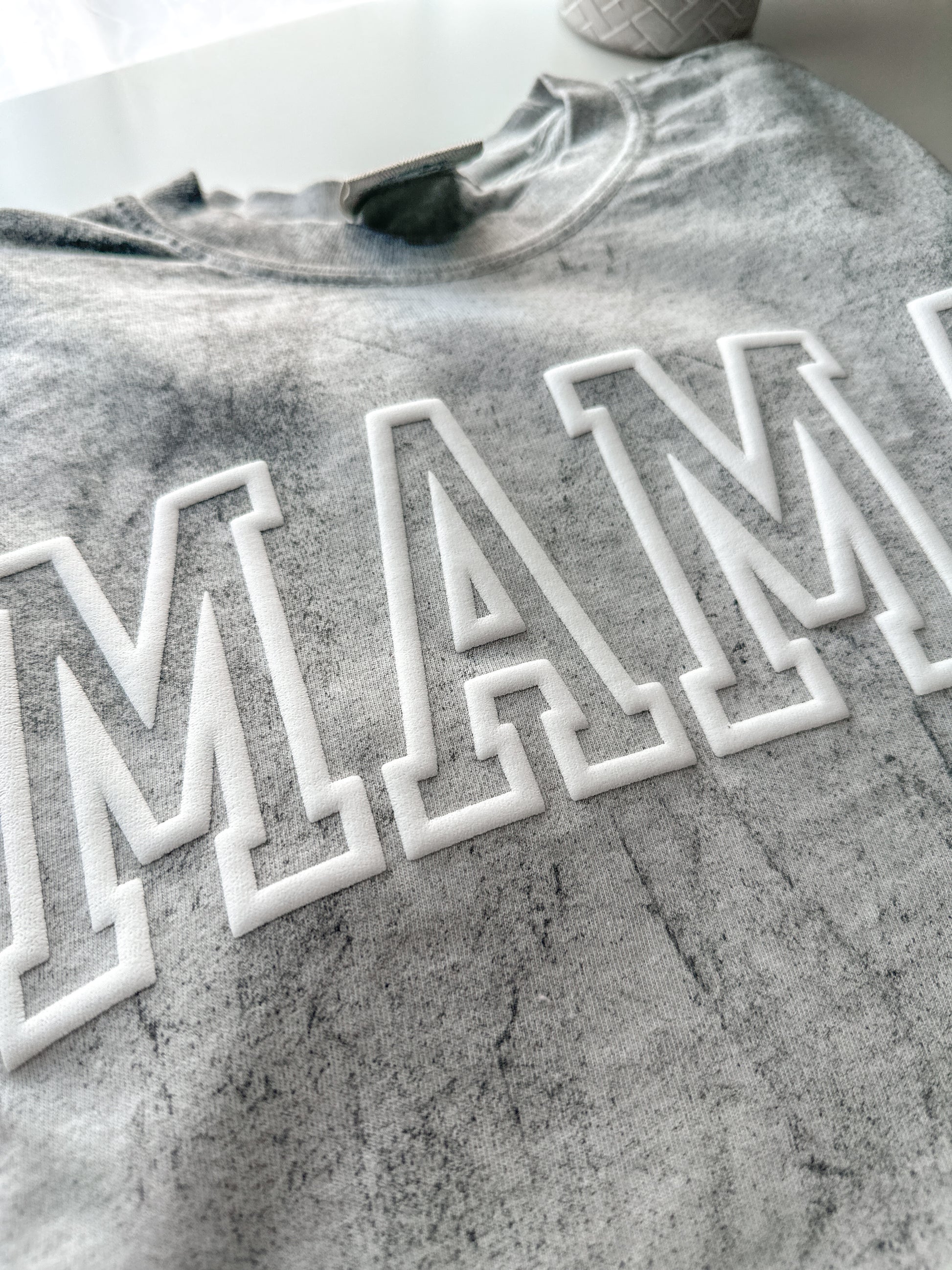 Unique 3D puff lettering design. The raised puff effect gives the word "MAMA" a standout look